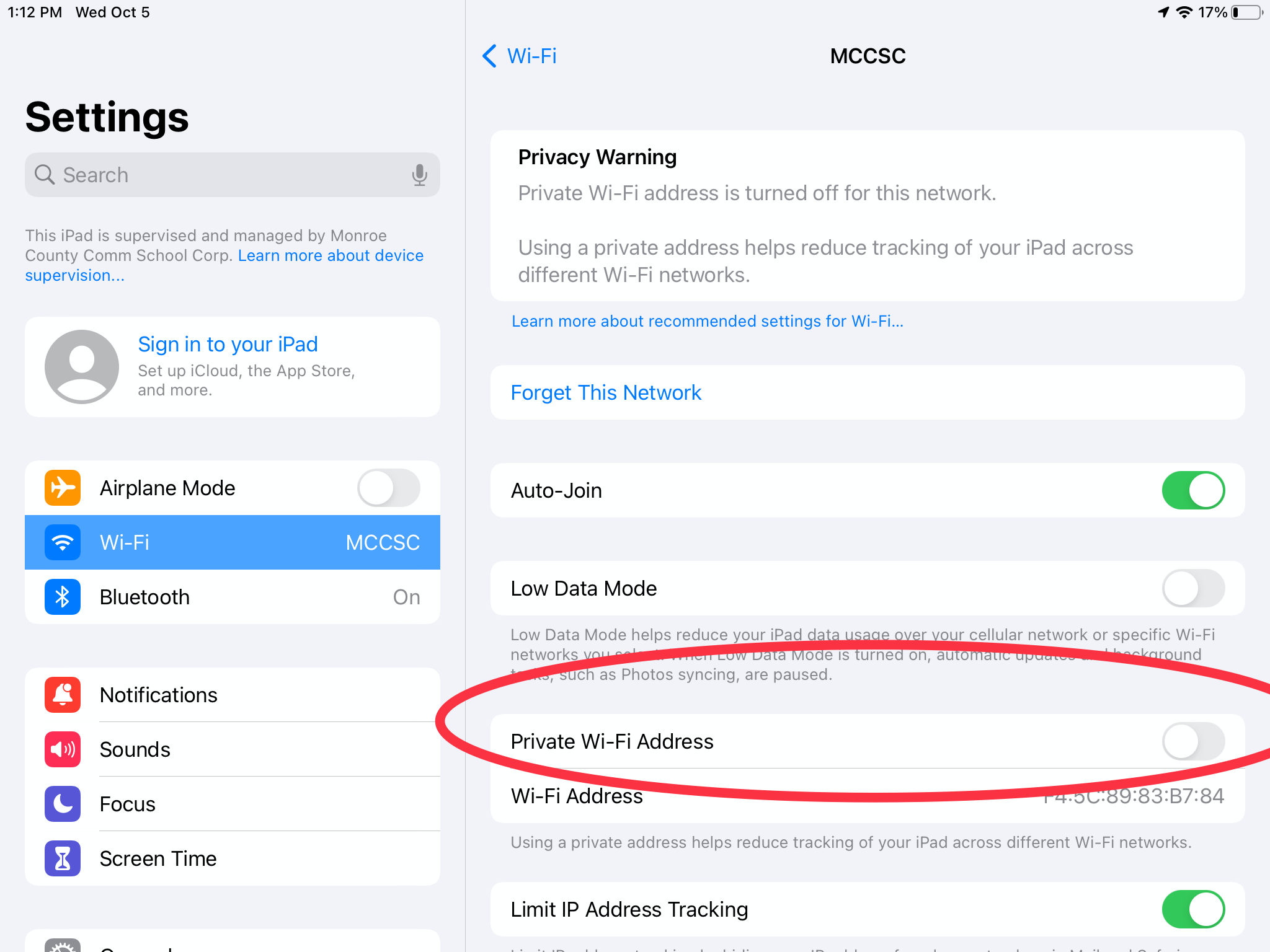 Solution 2: Verify Wi-Fi is ON and connected to MCCSC.