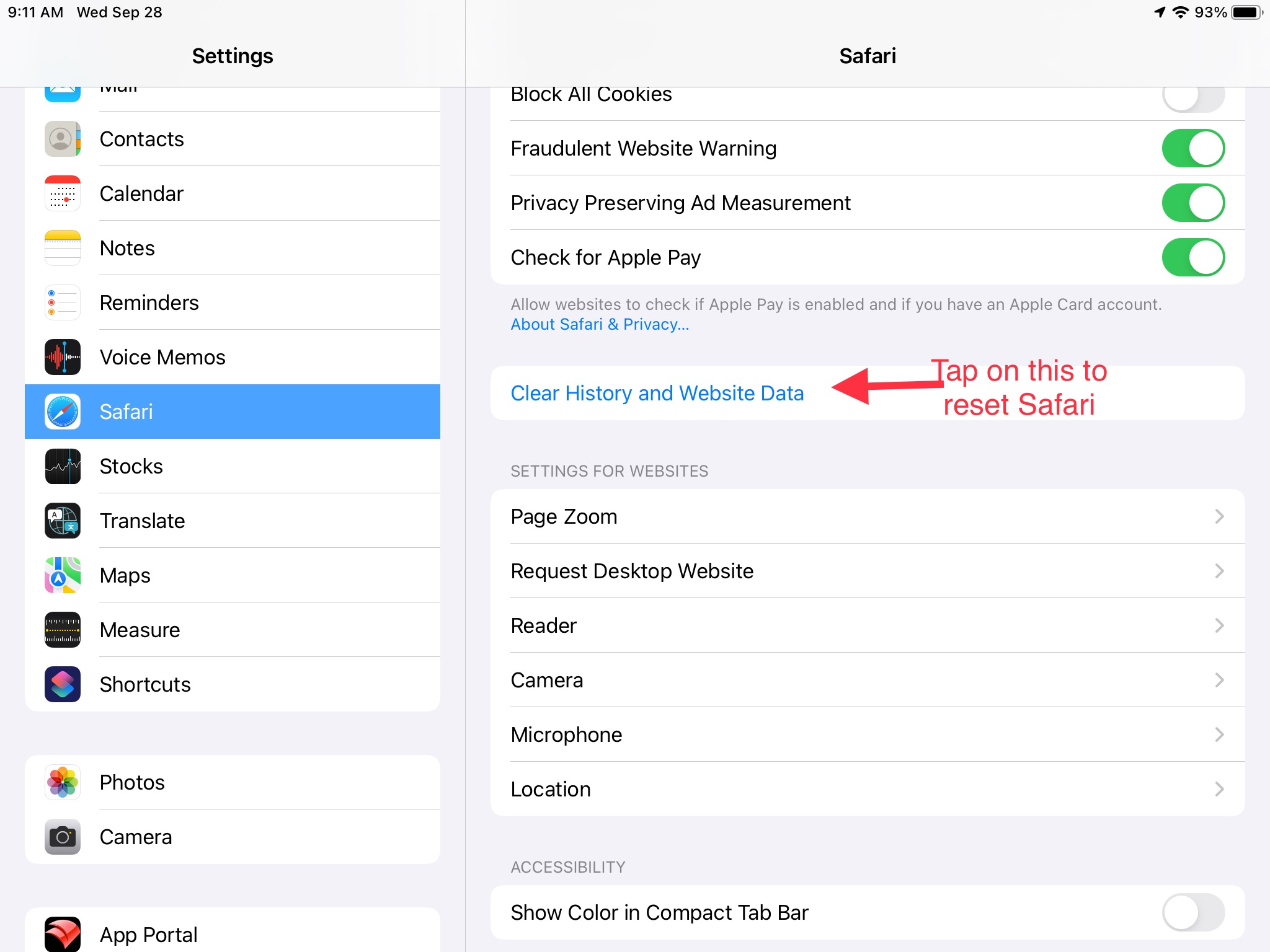 As pictured below, in Settings, navigate to Safari, click Clear History and Website Data.