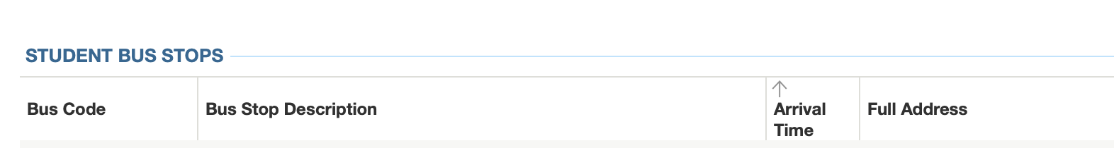 On the Transportation Tab, you should see a table with all relevant information displayed for your student(s).