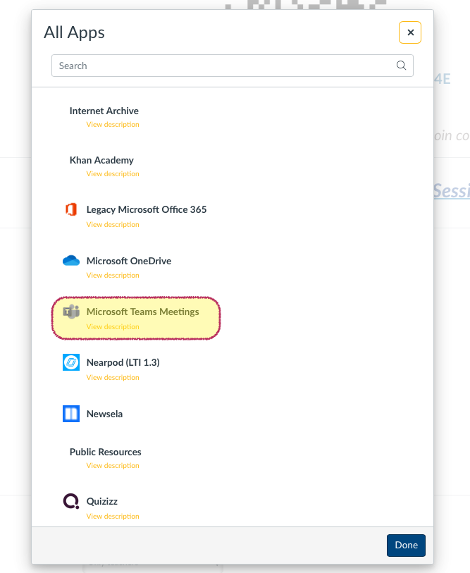 Scroll down and select the "Microsoft Teams Meetings" tool.