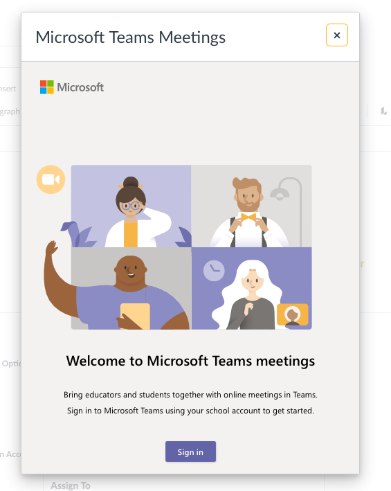 Click "Sign in" and if prompted, sign into Teams with your district account (sign in may happen automatically if you are already signed into the Teams app on your device).