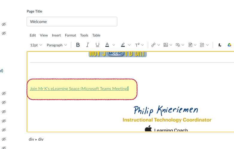 This updated guide shows how you can use the external Microsoft Teams Meetings tool in Canvas to set up a a link for eLearning. If you would prefer to watch a video of this process, please follow this link: Updated Team Setup in Canvas
