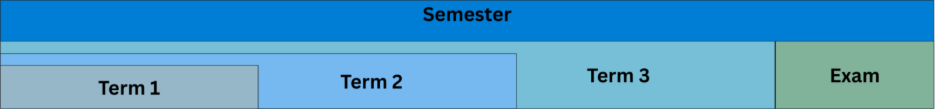 Diagram illustrating how a typical semester is structured. *(For a trimester, the structure would be similar, but would only include two terms)